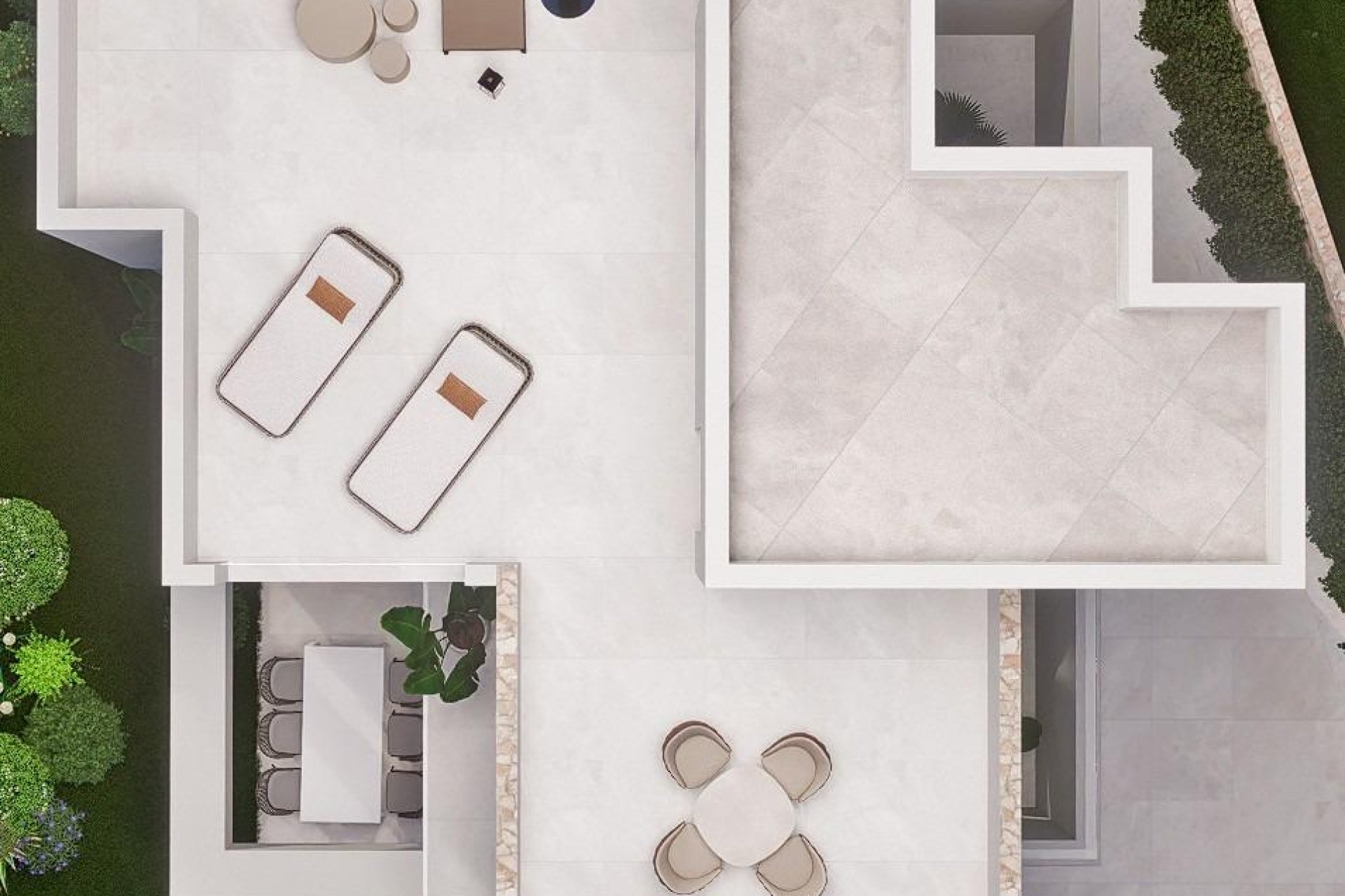 Wille zbudowane są na 2 piętrach i mają 3 sypialnie, 3 łazienki, kuchnię na otwartym planie z salonem, wbudowane szafy, prywatne solarium, ogród z basenem i miejsce parkingowe na 2 samochody.