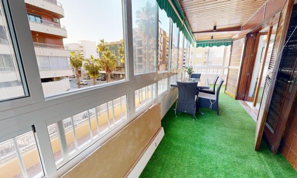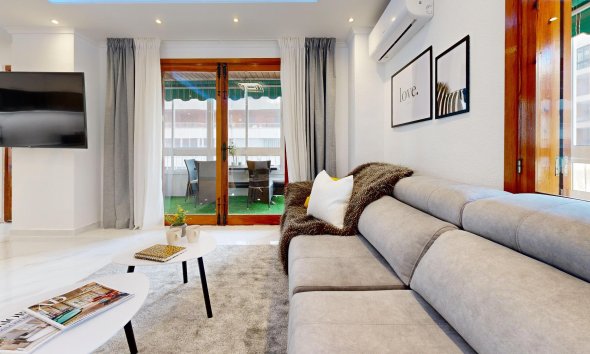 Discover Your Coastal Oasis: A Home That Combines Comfort, Style, and the Seaside Breeze~~Imagine waking up every morning to the gentle sea breeze and the soothing sound of the waves. This bright first-floor flat, located on the first line of the beach, offers you the perfect blend of comfort and style, just a few steps from the sea. Although the flat doesn’t offer direct sea views, the coastal atmosphere is ever-present.~~A Home That Welcomes You~As you step inside, a spacious and elegant vestibule greets you, adorned with marble flooring that exudes freshness and sophistication. Natural light floods every corner, bouncing off the crisp white walls to create a warm and luminous ambiance.~~Spaces Designed for Living and Sharing~The heart of this home is its open-plan living area, where a modern kitchen seamlessly connects with the dining and lounge spaces. Recently renovated, this area offers a contemporary and functional design, perfect for hosting friends, enjoying family meals, or relaxing in comfort.~~From the living area, step onto the spacious L-shaped terrace, which extends your living space outdoors. It’s an ideal spot for sunny breakfasts, peaceful afternoons with a good book, or unforgettable evenings as you unwind in the tranquillity of the coast.~~Rest in Absolute Comfort~The flat features three bedrooms, thoughtfully designed to provide privacy and relaxation. Two of the bedrooms are equipped with fitted wardrobes and air conditioning, ensuring your comfort even on the hottest days. The third bedroom is equally cosy and versatile, suitable as a study, children’s room, or guest space.~~Practical and Functional Amenities~The property includes two full bathrooms in their original state, offering you the opportunity to personalise them if desired. Their current layout is practical and fully ready for use.~~Living Your Best Coastal Life~This flat offers more than just a home; it’s a lifestyle. Located mere steps from the sea, you’ll enjoy morning strolls along the shore, sun-filled beach days, and relaxed evenings in a serene coastal setting. Its spacious and well-thought-out design makes it the perfect retreat for those seeking comfort without compromising on proximity to the beach.