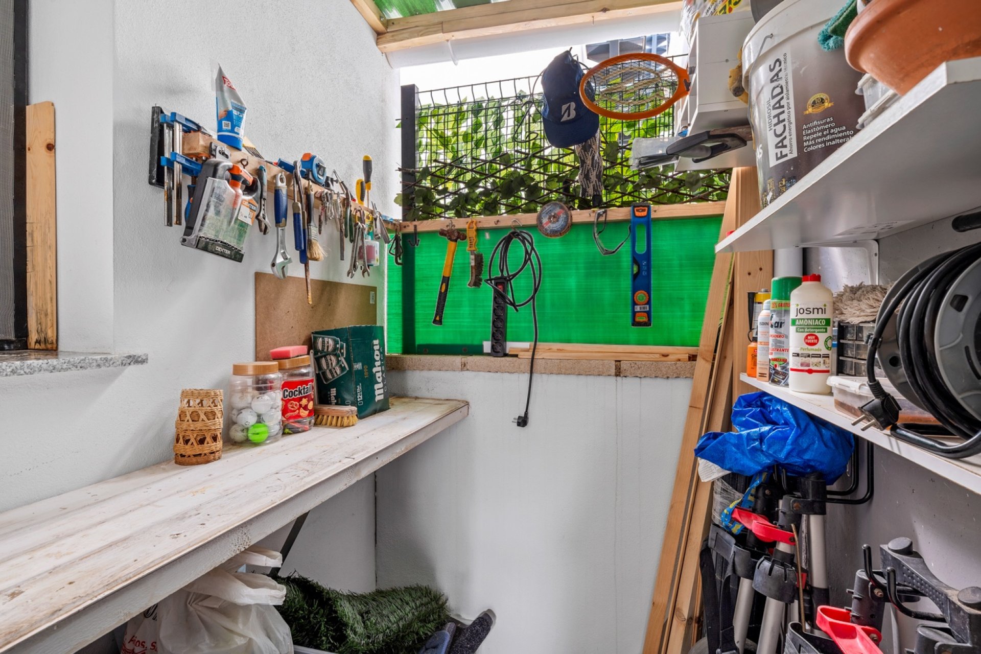 There is also a utility area with workbench and an additional storage area. Several awnings have been installed to provide shade during the warmer summer months.